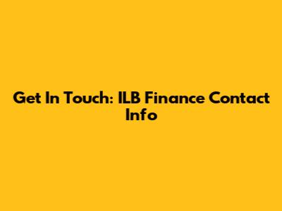 Get In Touch: ILB Finance Contact Info