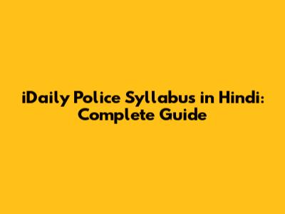 Hey guys! Are you prepping for the iDaily Police exam and need a solid syllabus in Hindi to guide you? Well, you've landed in the right spot! This guide will break down everything you need to know, making your study journey smooth and effective. Let's get started!