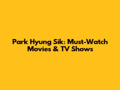Park Hyung Sik: Must-Watch Movies & TV Shows