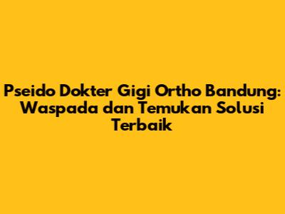 Pseido Dokter Gigi Ortho Bandung: Waspada & Cari Solusi Tepat